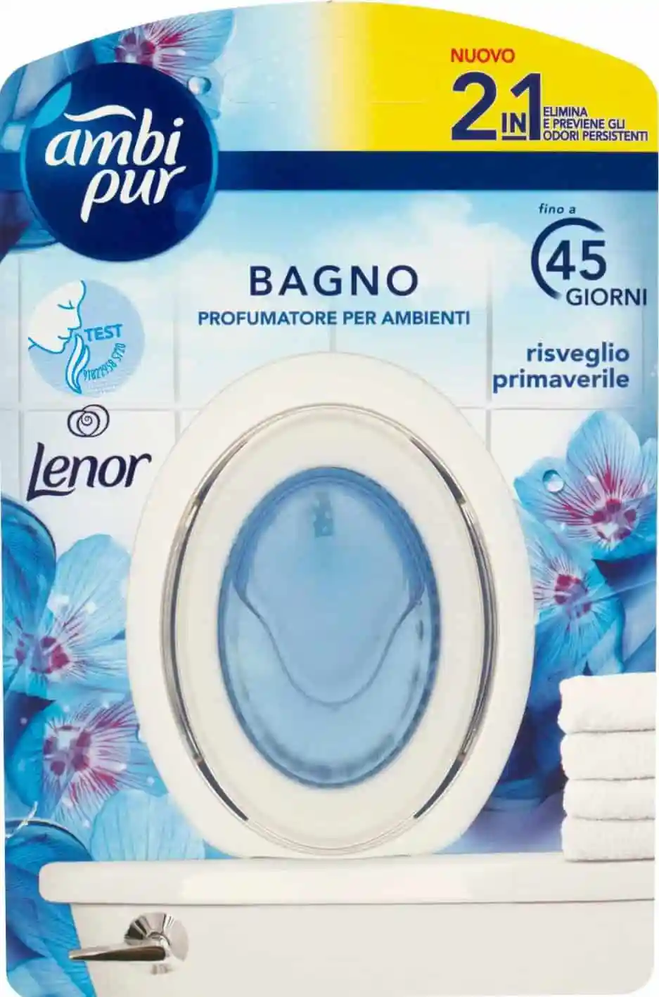 Ambipur Bagno risveglio di primavera. Profumatore per ambiente, ideale per il bagno. Formula 2 in 1 elimina e previene gli odori persistenti fino a 45 giorni.