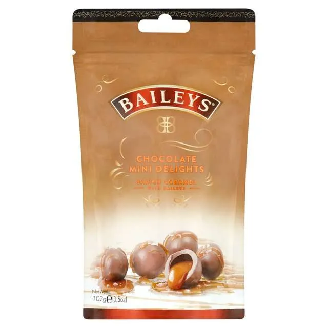 Croccanti palline di cioccolato al latte ripiene di crema al caramello salato e liquore irlandese Baileys. Scopri Baileys Salted Caramel Mini Delight!