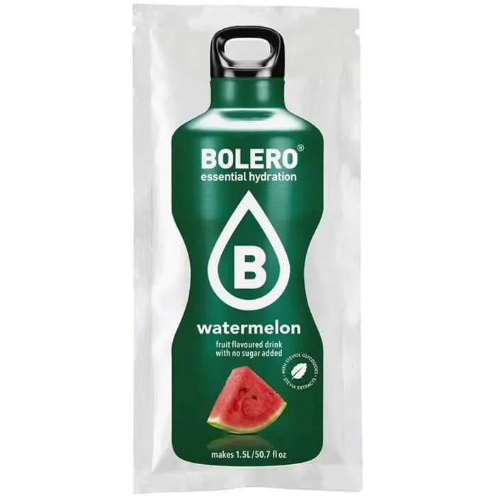 BOLERO Watermelon è l’aromatizzante per acqua al gusto di Anguria. Con una bustina di BOLERO Watermelon puoi fare 1,5 / 2 litri di bibita al gusto di Anguria! Senza zucchero!! Scopri BOLERO Watermelon!