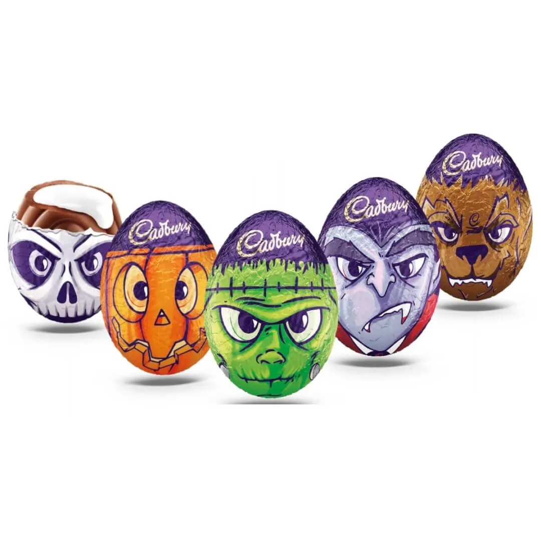 Cadbury Goo Heads singolo sono ovetti di cioccolato al latte ripieni di crema al latte. Scopri anche tu le uova mostruose se ne hai il coraggio e festeggia al meglio Halloween!! Prova Cadbury Goo Heads singolo!!