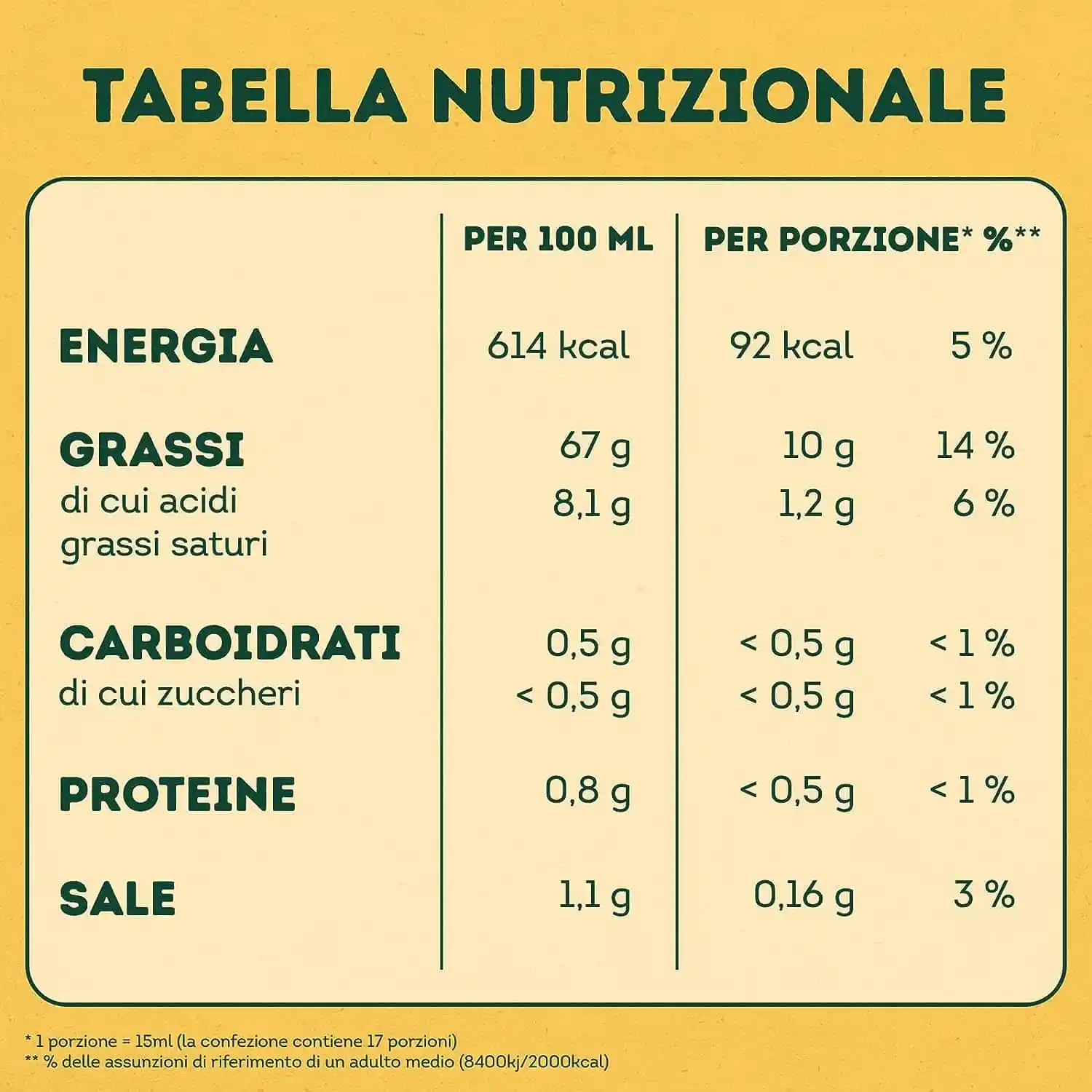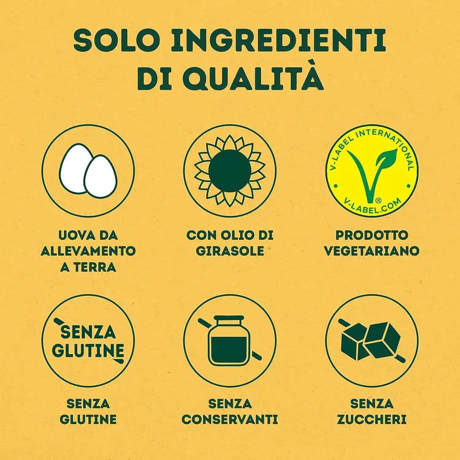 olio di semi di girasole (70%), acqua, aceto di vino bianco, tuorlo d´UOVO pastorizzato (5%), sale, amido modicato, addensante: gomma di xanthan; succo di limone concentrato, aromi.