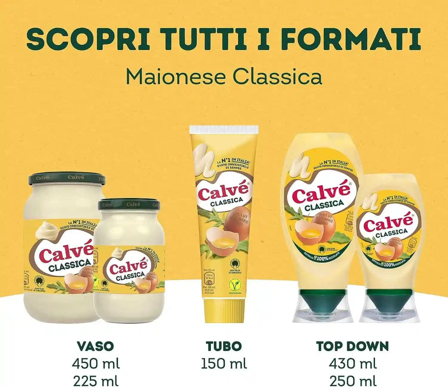 La Maionese Calvé torna alla sua tradizionale ricetta, amata da sempre, fatta con olio di semi di girasole, e al suo gusto irresistibile che accompagna piatti, momenti e occasioni degli italiani da più di 50 anni.