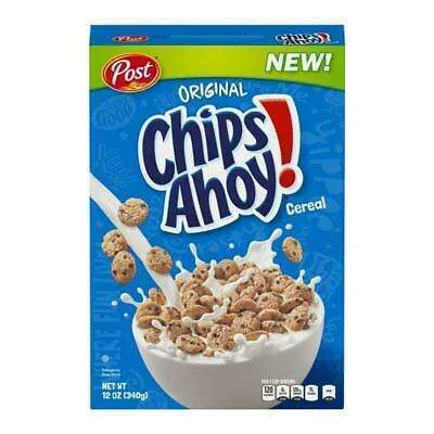 Chips Ahoy Cereal sono cerali al gusto dei famosissimi cookie Chips Ahoy. Inizia la tua giornata con una carica di energia e dolcezza con Chips Ahoy Cereal!