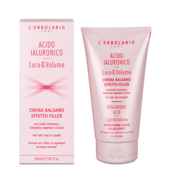 Un Balsamo dalla consistenza piacevolmente cremosa, che agisce con un sorprendente effetto filler fin dal primo utilizzo: i capelli appaiono da subito più consistenti, corposi e voluminosi grazie all’azione straordinaria dell’Acido Ialuronico. Inoltre la Cheratina vegetale incrementa resistenza ed elasticità, mentre il distillato di polpa di Cocco restituisce morbidezza.