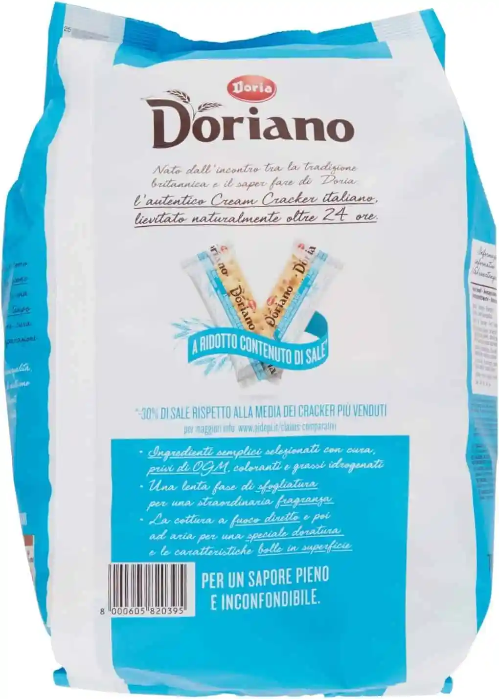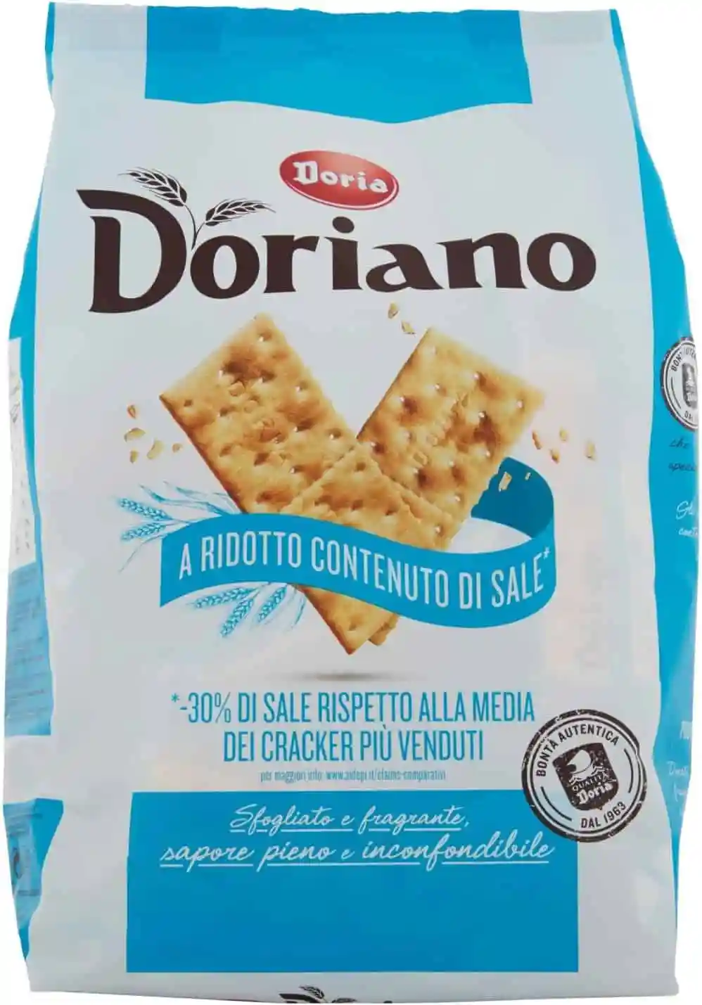 Doriano: crackers a lievitazione naturale lenta, sfogliatura a strati e cottura dorata a fiamma viva. Una croccantezza e un gusto inimitabile rendono unico questo cracker. Scopri tutta la gamma Doriano: crackers con sale iodato, a ridotto contenuto di sale e integrali. I crackers buoni come il pane.