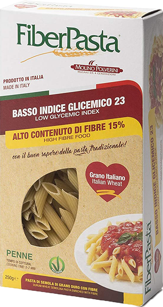 FiberPasta contiene il 15% di fibre, oltre il doppio dell’integrale, ed ha lo stesso colore e sapore delle normali paste di grano duro. Ha un basso contenuto di nichel: 0,071mg/kg. Il grano utilizzato è di origine esclusivamente italiana.