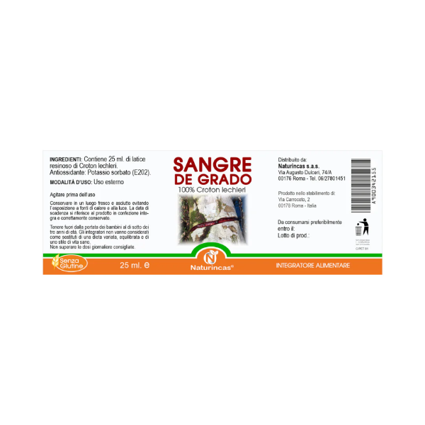 Scopri i benefici della Sangre de Grado, una resina naturale proveniente dall’Amazzonia, rinomata per le sue potenti proprietà curative. Utilizzata da secoli nella medicina tradizionale, la Sangre de Grado aiuta a rigenerare la pelle, favorisce la cicatrizzazione e agisce come un efficace antinfiammatorio e antibatterico. Ideale per trattare ferite, irritazioni cutanee, ulcere e problemi gastrointestinali, questo prodotto è 100% naturale e privo di sostanze chimiche. Acquista oggi Naturincas – Integratore cicatrizzante Sangre De Grado e approfitta di un rimedio versatile e sicuro per la tua salute e bellezza!