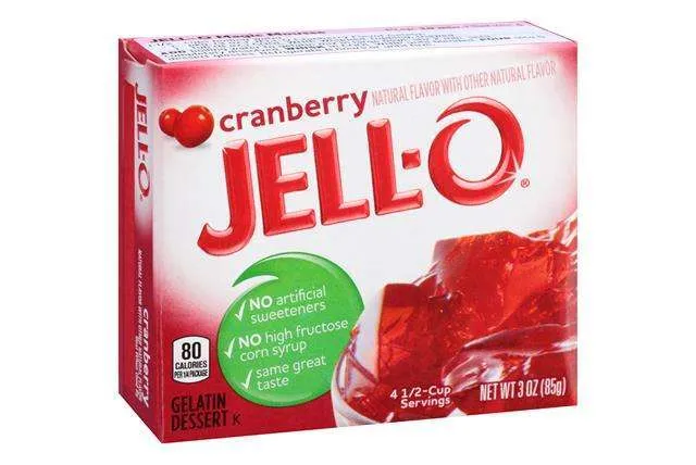 Jell-O Cranberry Gelatina Preparato per gelatina dalla consistenza perfetta al gusto di mirtillo rosso. Facilissima da fare con la sola aggiunta di acqua! Divertiti con i tuoi amici con questo delizioso preparato per gelatina!