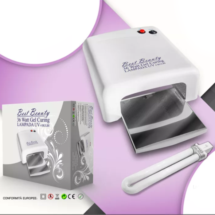 La Lampada UV per unghie “Best Beauty” è l’alleata perfetta per manicure e pedicure impeccabili. Grazie ai suoi 36W di potenza e ai 4 bulbi UV inclusi, garantisce un’asciugatura uniforme e rapida dei gel e dello smalto tradizionale.