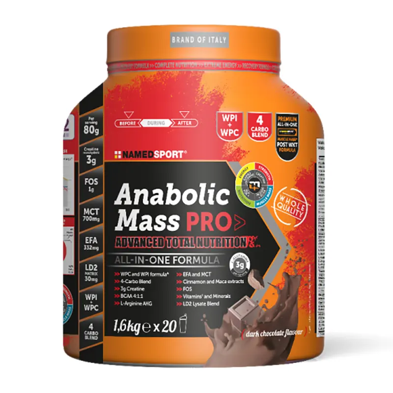 NamedSport Anabolic Mass Pro ha una formula unica all-in-one per nutrire ed energizzare, inoltre promuovere la crescita della massa muscolare. NamedSport Anabolic Mass Pro è una formula unica all-in-one sviluppata appositamente da NAMEDSPORT in collaborazione con Alex Zuccaro, Capitano della Nazionale Italiana IFBB (Federazione Internazionale di Bodybuilding e Fitness).