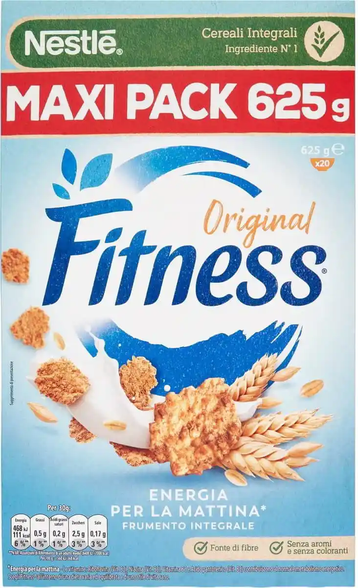 Frumento integrale 63,8 %, Riso 36 %, Zucchero, Sciroppo di zucchero invertito, Estratto di malto d’orzo, Carbonato di calcio, Sale, Sciroppo di glucosio, Melassa, Ferro, Antiossidante estratto ricco di tocoferolo, Acido pantotenico, Niacina, Riboflavina, Acido folico, Vitamina B6. Può contenere latte e frutta a guscio.
