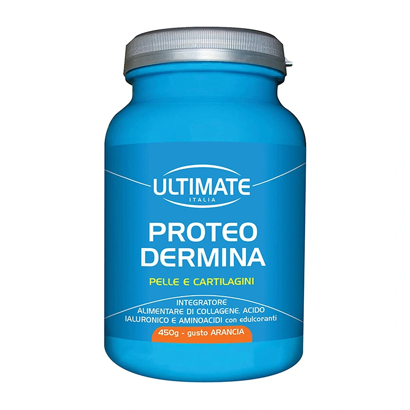 Il collagene contenuto è in forma idrolizzata, l’unica che il nostro organismo può assorbire. Inoltre, la ricca combinazione di principi attivi presenti in alte concentrazioni non solo si prende cura della pelle, ma anche della cartilagine, dei tendini e dei legamenti. Contiene infatti 10 grammi di prezioso collagene puro idrolizzato e 120 mg di acido ialuronico per dose (dose scientificamente provata efficace). Inoltre Proteo Dermina Arancia è fortificato con acido ascorbico, zinco, arginina, glicina, lisina: tutti ingredienti che giocano un ruolo fondamentale nel metabolismo del derma per il massimo effetto antietà.