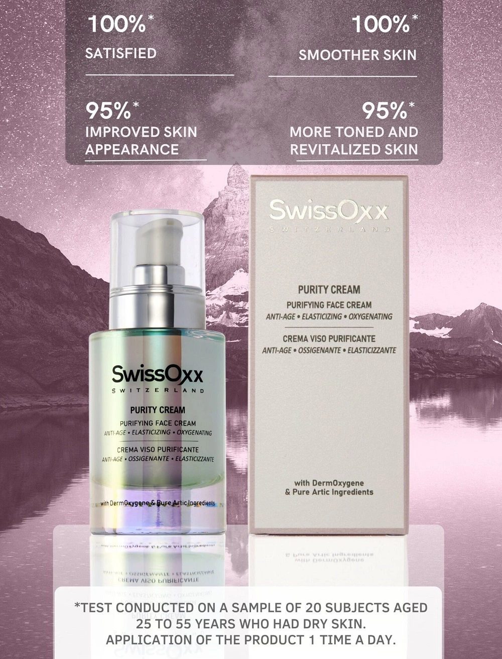 *Test di autovalutazione eseguito da laboratorio indipendente sotto controllo dermatologico effettuato su un campione di 20 soggetti di età compresa tra 25 e 55 anni. Risultati ottenuti dopo 28 giorni con utilizzo del prodotto una volta al giorno. Percentuale di soggetti che presentavano pelle secca.