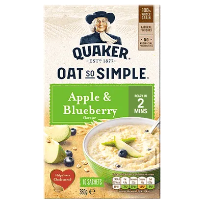 Quaker Oat Apple & Blueberry è il preparato avena per creare il tuo porridge perfetto al gusto di mela e mirtillo. Quaker Oat Apple & Blueberry contiene 10 bustine. Inizia la mattina con una colazione sana e nutriente a base di porridge di avena. Scopri Quaker Oat Apple & Blueberry!