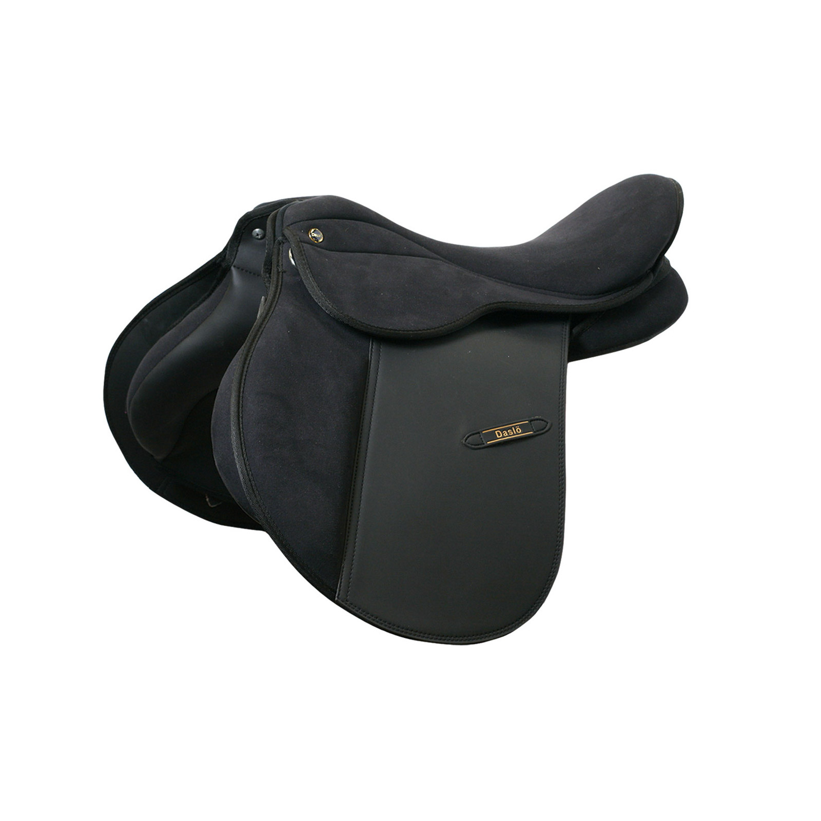 In pelle sintetica, provvista di archetto intercambiabile che consente di adattare la sella al garrese di ogni cavallo. Con seggio e appoggi anteriori rivestiti in materiale scamosciato anti-scivolo, arcione sintetico flessibile, estremamente leggera e di facile manutenzione. Con riscontri in cuoio di bufalo, appoggi a banana con velcro e cuscini imbottiti in lana. Misure 15″ e 16″ (Pony) con archetto 30cm nero/medio, misure 17″ e 18″ con archetto 28cm blu/medio stretto.