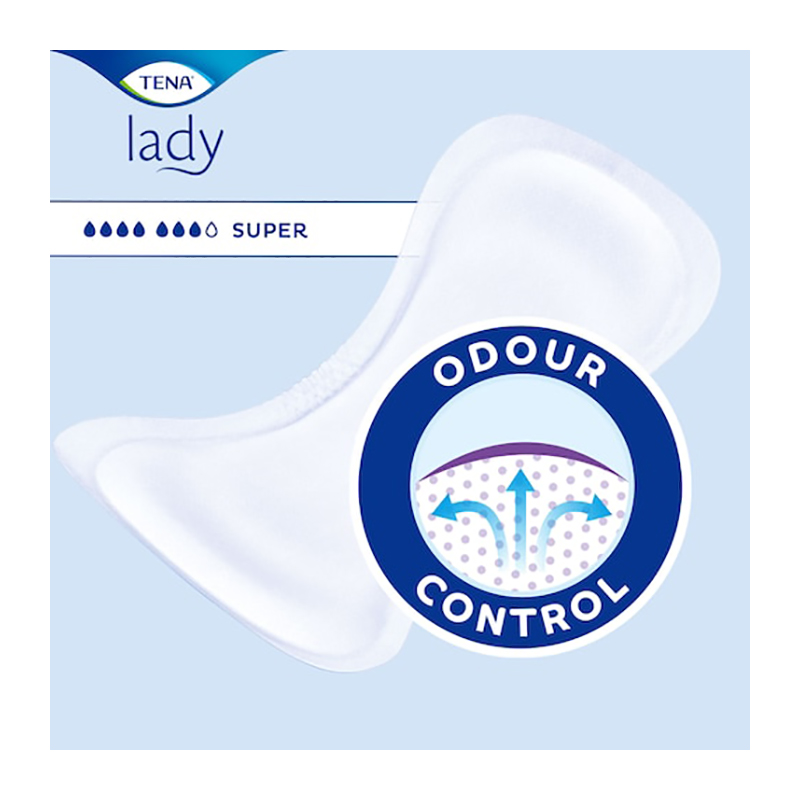 Assorbente femminile studiato per incontinenza da moderata a pesante TENA Lady Super è un assorbente dalla forma anatomica indicato per incontinenza da moderata a pesante. Grazie alla tecnologia Dry Fast Core, assorbe rapidamente le perdite di urina e le allontana dal diretto contatto con la cute. Grazie alla sua lunghezza e al suo spessore, TENA Lady Super è in grado di offrirti un’elevata protezione quando sei sdraiata, seduta o mentre svolgi le attività quotidiane. Il rivestimento Silky Soft è morbido e confortevole a contatto con la pelle e i materiali traspiranti permettono all’aria di circolare, favorendo così il benessere cutaneo.