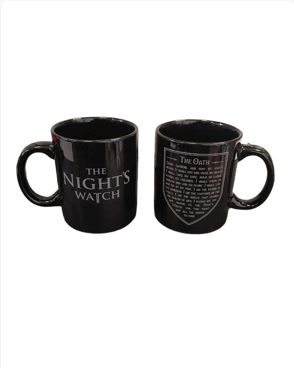Su un lato c’è la grafica del titolo “Night’s Watch” mentre dall’altro c’è il giuramento in inglese che fanno tutti i guardiani della notte!
