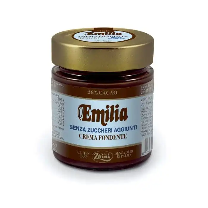 Crema Fondente Extra Zaini 26% di cacao, senza zuccheri aggiunti, vasetto in vetro da 200 gr.